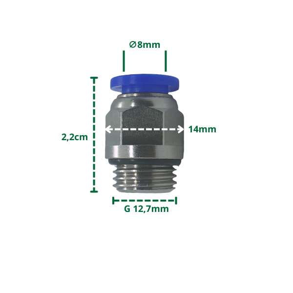 Łącznik pneumatyczny wtykowy 8mm, gwint 12,7mm